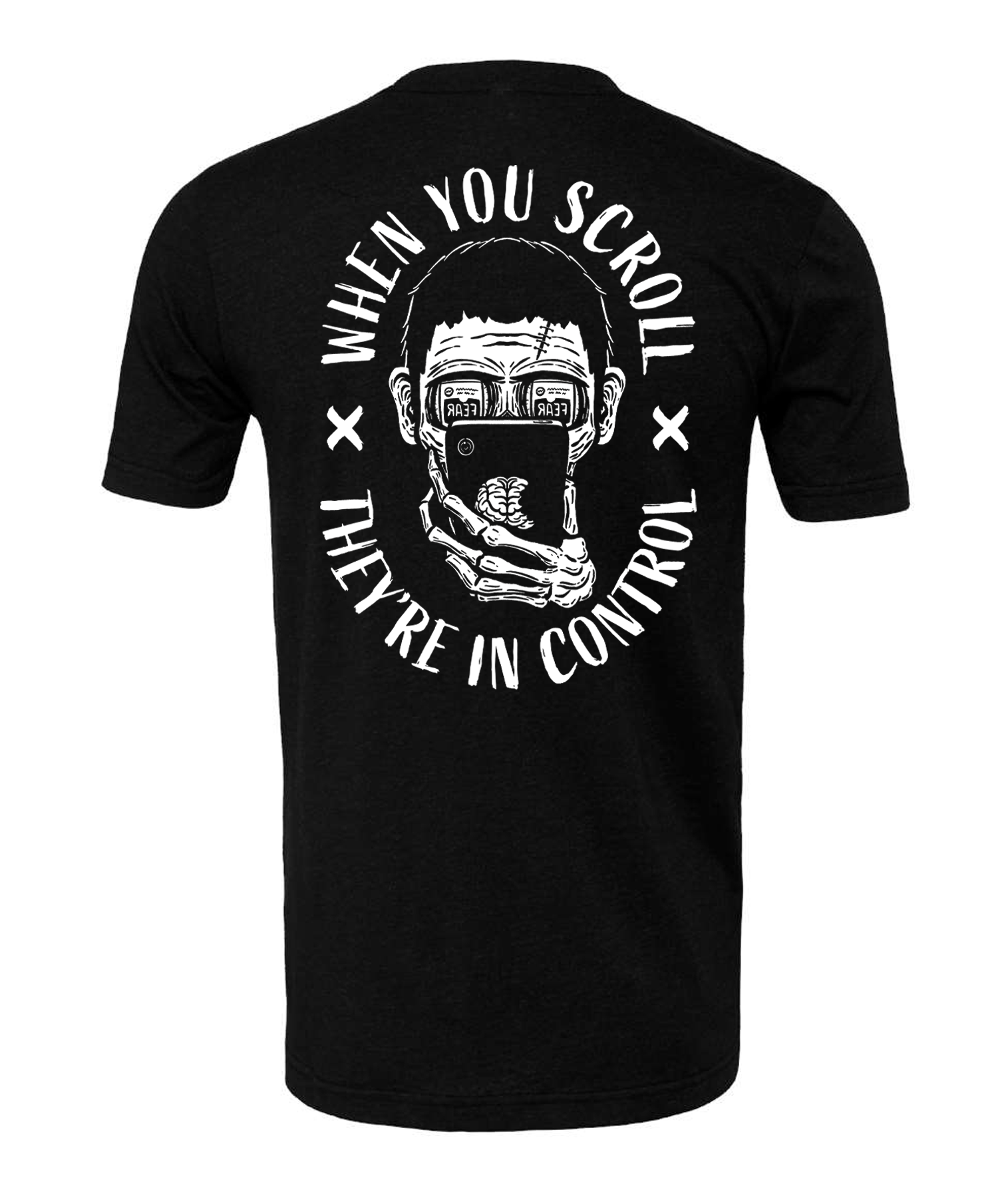 Front left chest and full back design printed on Bella Canvas 3001 CVC "Black Heather".